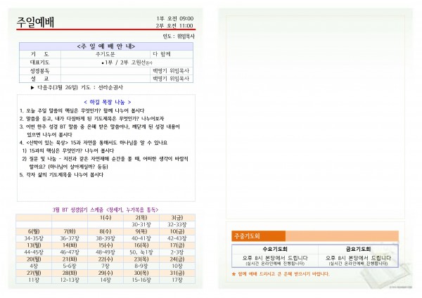 하길교회 3월 19일